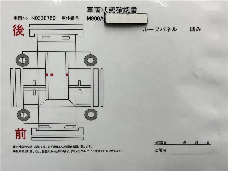 • 注2)上記と同様の評価点・状態表を「車両検査証明書」として店舗の展示車両に搭載しております。