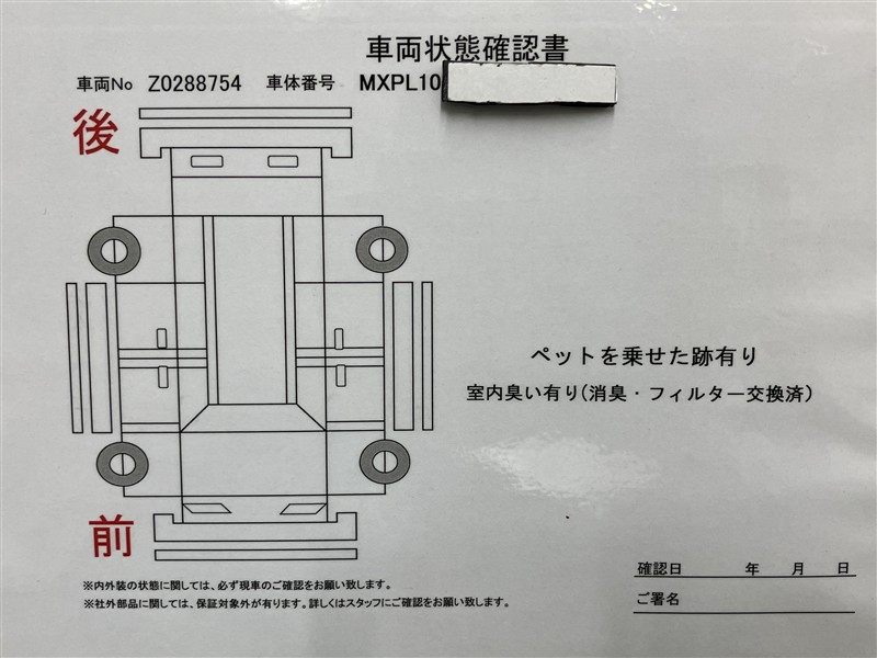 - 「定期点検整備なし(要整備箇所あり)」の場合、整備箇所につきましては、販売店へお問合せください。