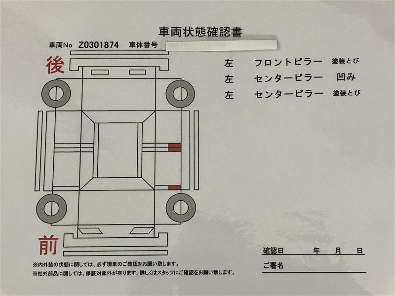 • 「定期点検整備なし(要整備箇所あり)」の場合、整備箇所につきましては、販売店へお問合せください。