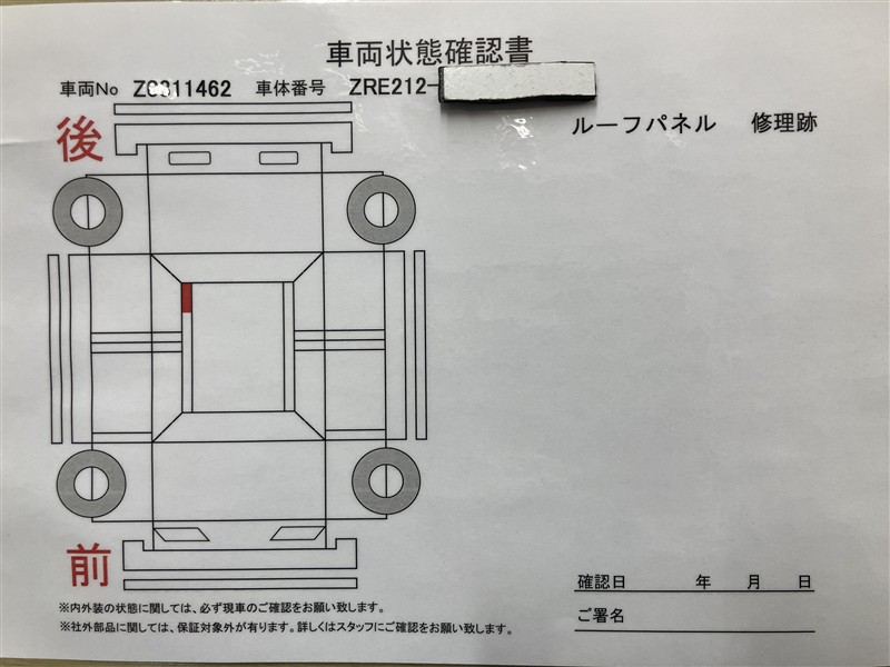 - 「修復歴あり」の場合、修復部位の詳細につきましては、販売店へお問合せください。