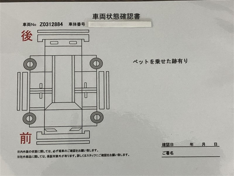 • 「定期点検整備なし(要整備箇所あり)」の場合、整備箇所につきましては、販売店へお問合せください。