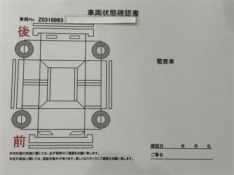 - 「定期点検整備なし(要整備箇所あり)」の場合、整備箇所につきましては、販売店へお問合せください。