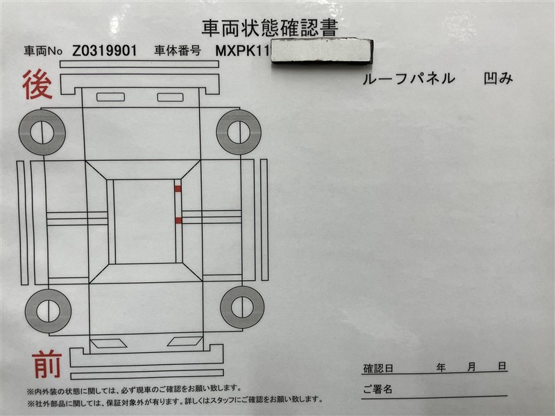 - 「定期点検整備なし(要整備箇所あり)」の場合、整備箇所につきましては、販売店へお問合せください。