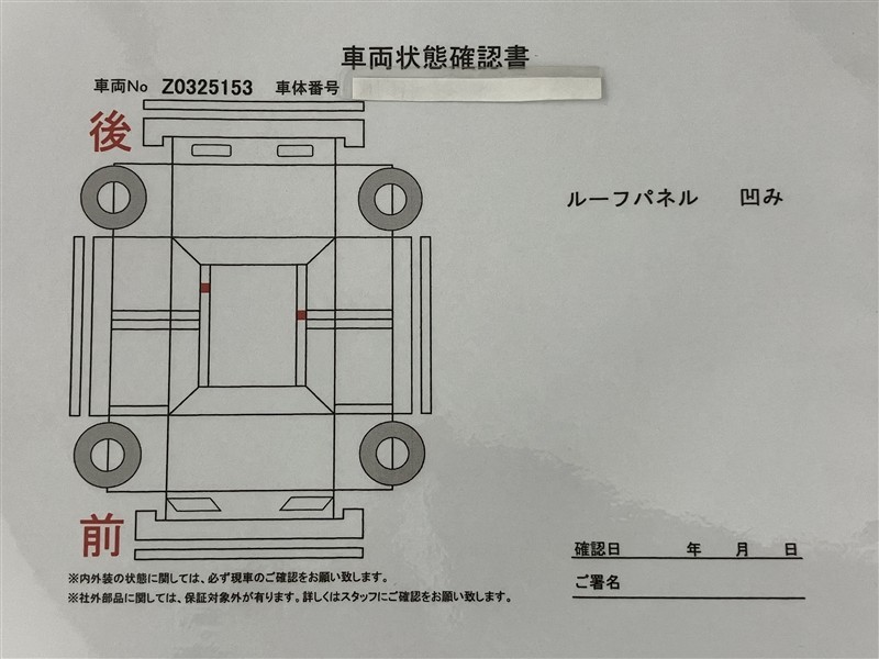 - 「定期点検整備なし(要整備箇所あり)」の場合、整備箇所につきましては、販売店へお問合せください。