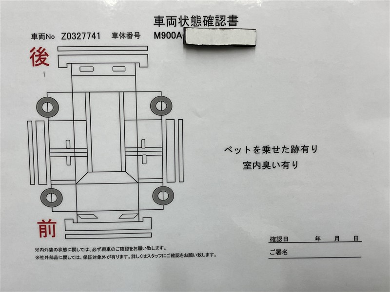 • 注2)上記と同様の評価点・状態表を「車両検査証明書」として店舗の展示車両に搭載しております。