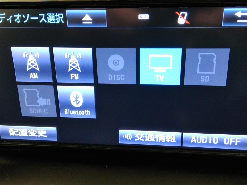 | カーナビ/DA | メモリーナビ(IN) またはナビ付きDA | TV | 地デジ(フルセグ) |