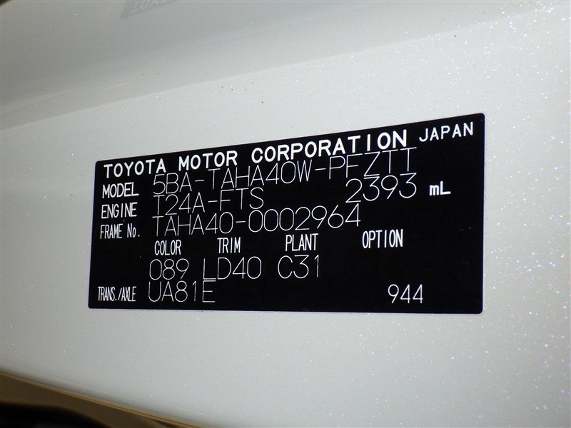 | 排気量 | 2,400cc | 全高 | 194cm |