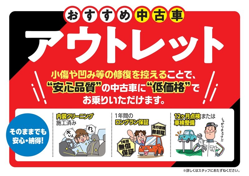 1:記載内容とは別に、距離・年式に応じて新車保証が付いている場合があります。詳細は販売店にお尋ねください。
