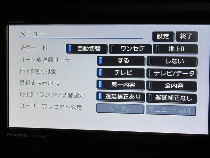 | カーナビ/DA | メモリーナビ(IN) またはナビ付きDA | TV | 地デジ(フルセグ) |