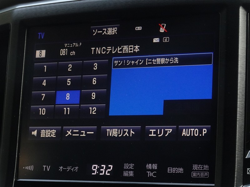 | カーナビ/DA | メモリーナビ(IN) またはナビ付きDA | TV | 地デジ(フルセグ) |