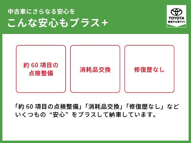 | 保証内容※1 | 保証付:ロングラン保証1年<走行距離無制限> +ハイブリッド保証<保証期間は初度登録年月から10年目まで、もしくは3年間のいずれか長い方。但し走行距離20万キロまで> |