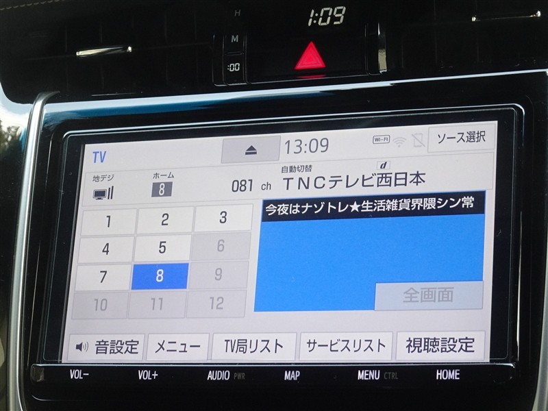 | カーナビ/DA | メモリーナビ(IN) またはナビ付きDA | TV | 地デジ(フルセグ) |