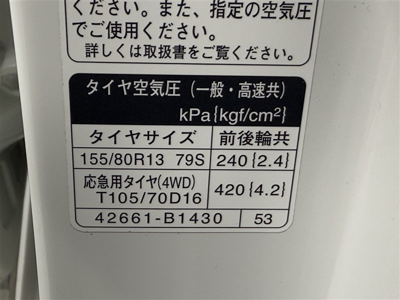 Tは応急タイヤの装着を示しています。
