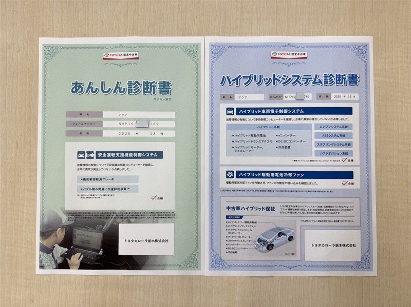 - 「定期点検整備なし(要整備箇所あり)」の場合、整備箇所につきましては、販売店へお問合せください。
