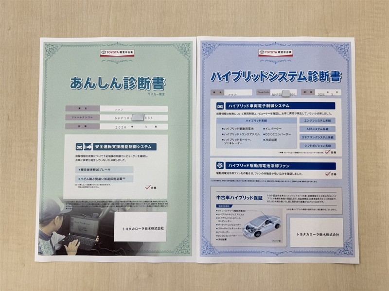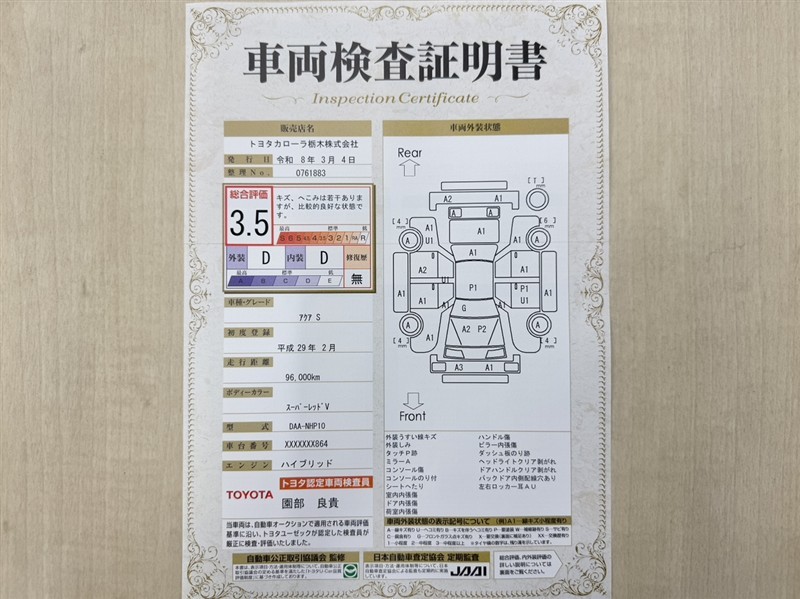 • 注2)上記と同様の評価点・状態表を「車両検査証明書」として店舗の展示車両に搭載しております。