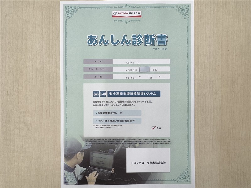 - 「定期点検整備なし(要整備箇所あり)」の場合、整備箇所につきましては、販売店へお問合せください。