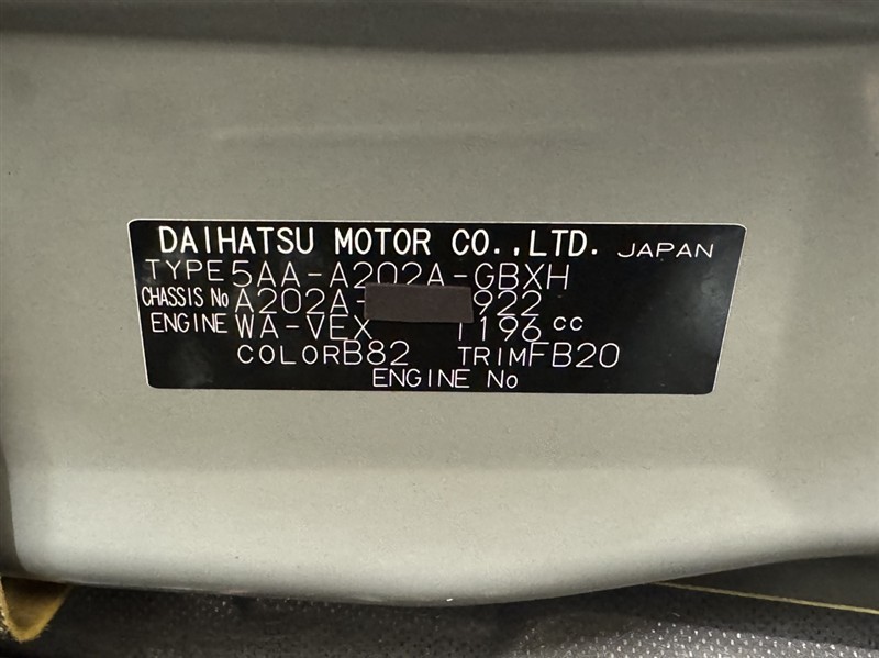 店舗管理ナンバー【332011045600】車台番号(下3桁)【922】