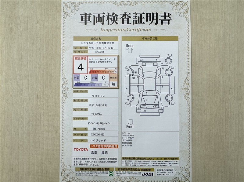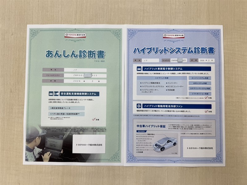• 注2)上記と同様の評価点・状態表を「車両検査証明書」として店舗の展示車両に搭載しております。