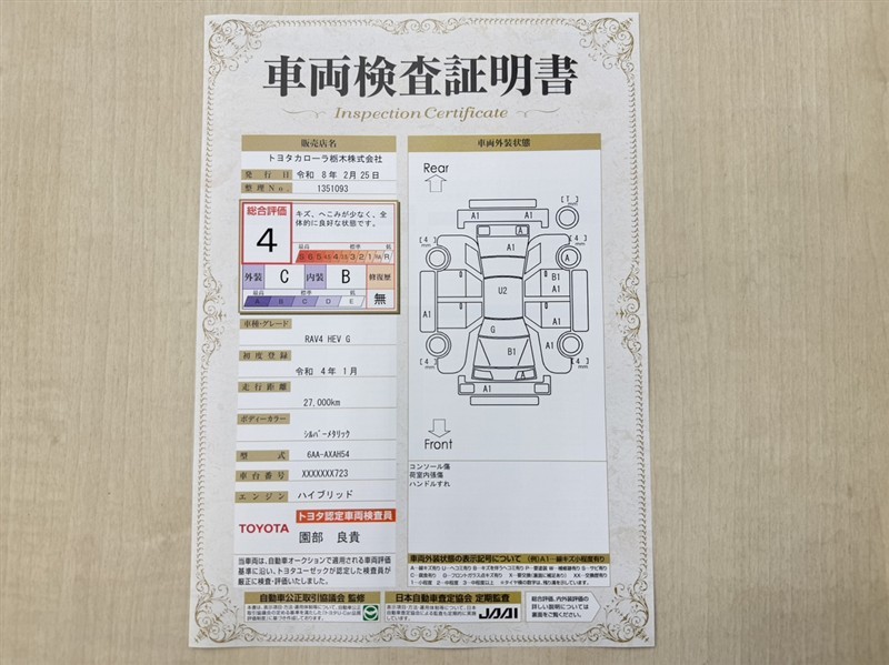 • 注1)本ページに掲載された評価は、車両検査実施時の車両状態を示したものです。