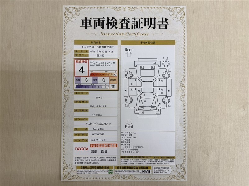• 注1)本ページに掲載された評価は、車両検査実施時の車両状態を示したものです。
