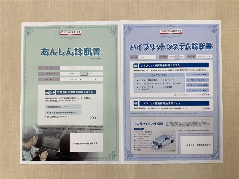 - 表示項目・方法・運用体制等について、自動車公正取引協議会の定める基準を満たした「トヨタU-Car品質評価制度」に基づき作成しております。