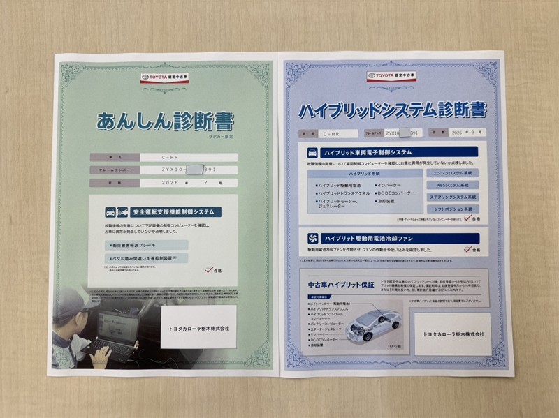 • 注2)上記と同様の評価点・状態表を「車両検査証明書」として店舗の展示車両に搭載しております。