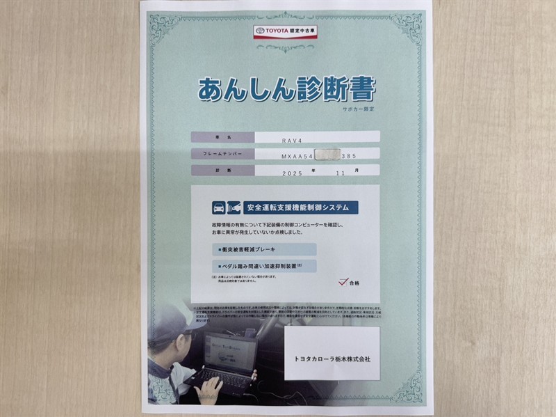 • 注2)上記と同様の評価点・状態表を「車両検査証明書」として店舗の展示車両に搭載しております。