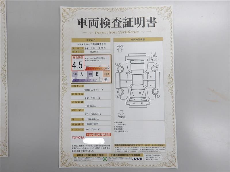 • 注1)本ページに掲載された評価は、車両検査実施時の車両状態を示したものです。