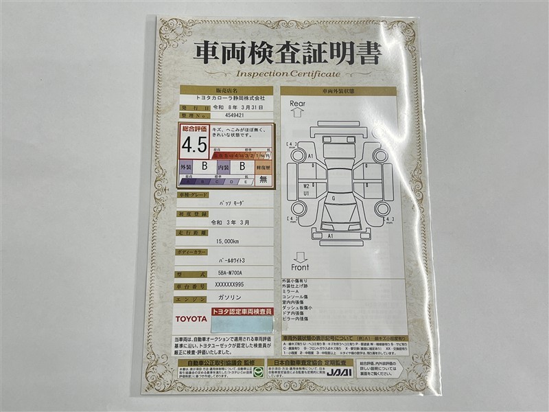 • 注2)上記と同様の評価点・状態表を「車両検査証明書」として店舗の展示車両に搭載しております。