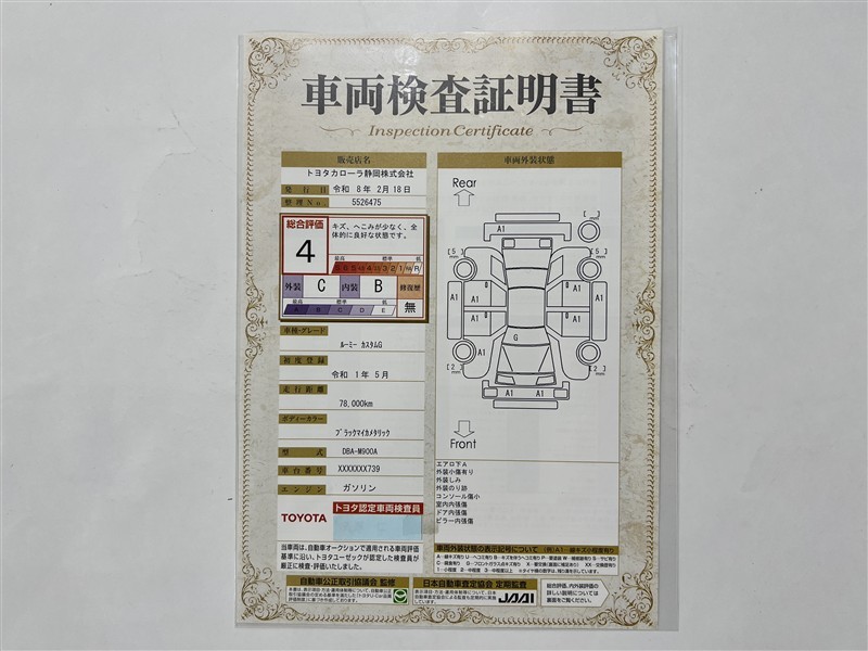 • 注2)上記と同様の評価点・状態表を「車両検査証明書」として店舗の展示車両に搭載しております。