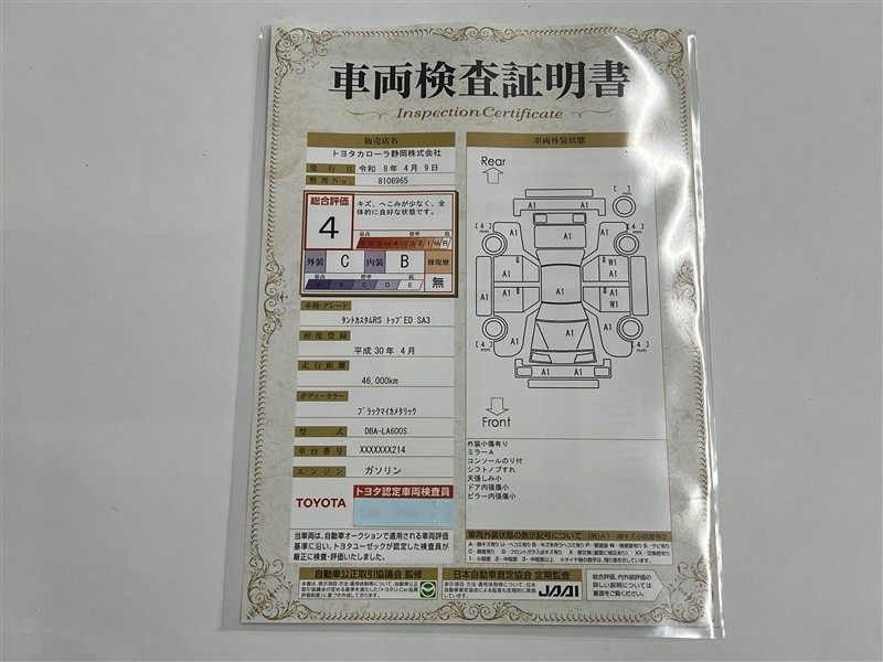• 注2)上記と同様の評価点・状態表を「車両検査証明書」として店舗の展示車両に搭載しております。