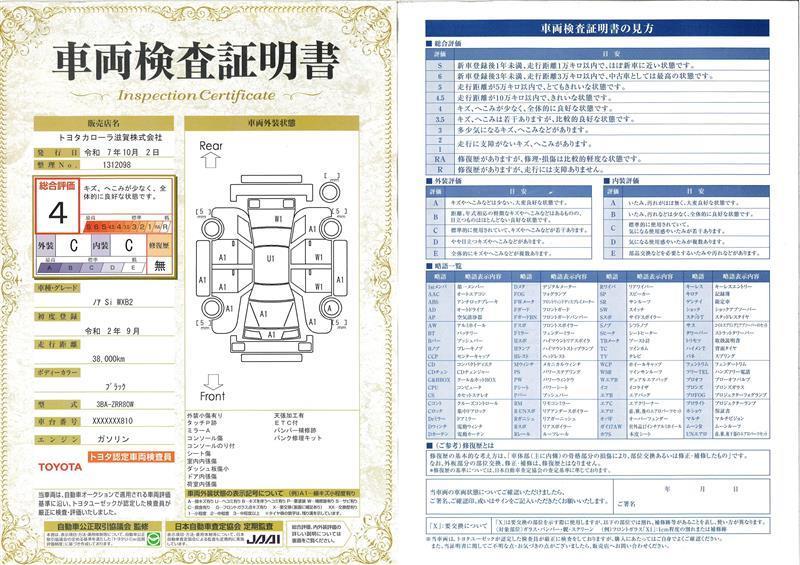 詳細及び現状の車両状態につきましては、店舗スタッフまでお尋ねください。 - 注2)上記と同様の評価点・状態表を「車両検査証明書」として店舗の展示車両に搭載しております。