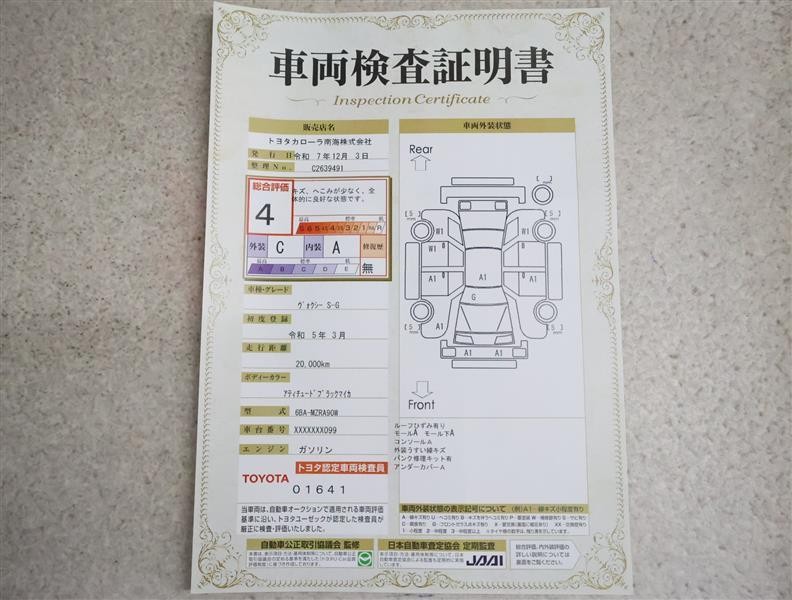 詳細及び現状の車両状態につきましては、店舗スタッフまでお尋ねください。 - 注2)上記と同様の評価点・状態表を「車両検査証明書」として店舗の展示車両に搭載しております。