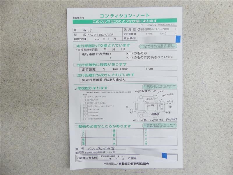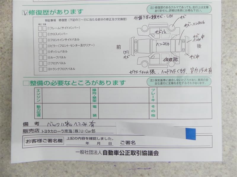 • 「修復歴あり」の場合、修復部位の詳細につきましては、販売店へお問合せください。