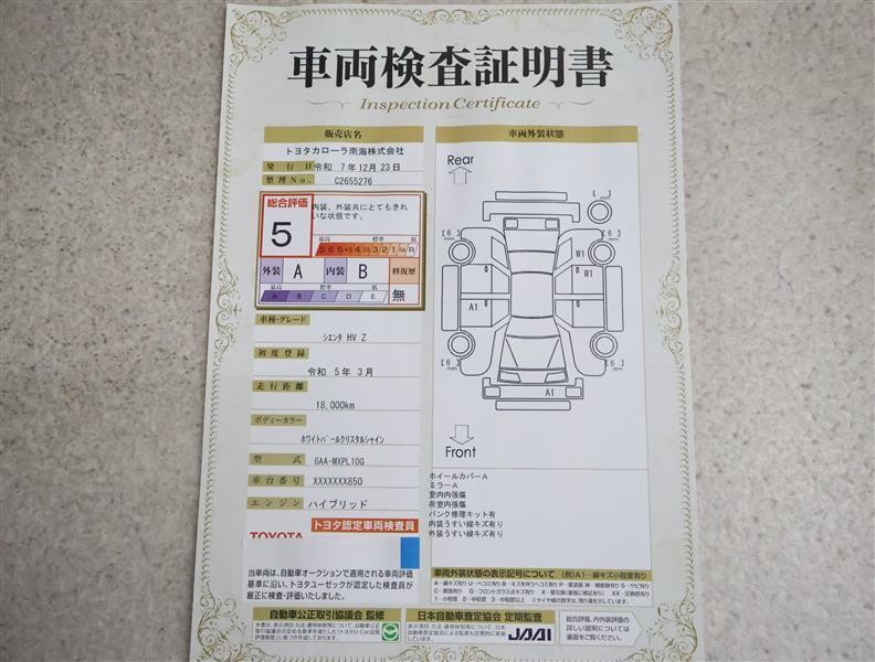 • 注2)上記と同様の評価点・状態表を「車両検査証明書」として店舗の展示車両に搭載しております。