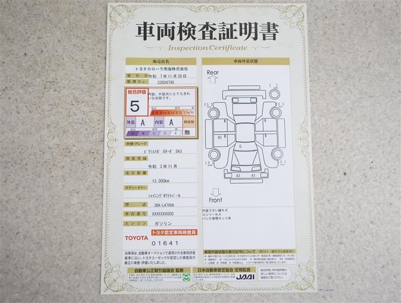 詳細及び現状の車両状態につきましては、店舗スタッフまでお尋ねください。 - 注2)上記と同様の評価点・状態表を「車両検査証明書」として店舗の展示車両に搭載しております。