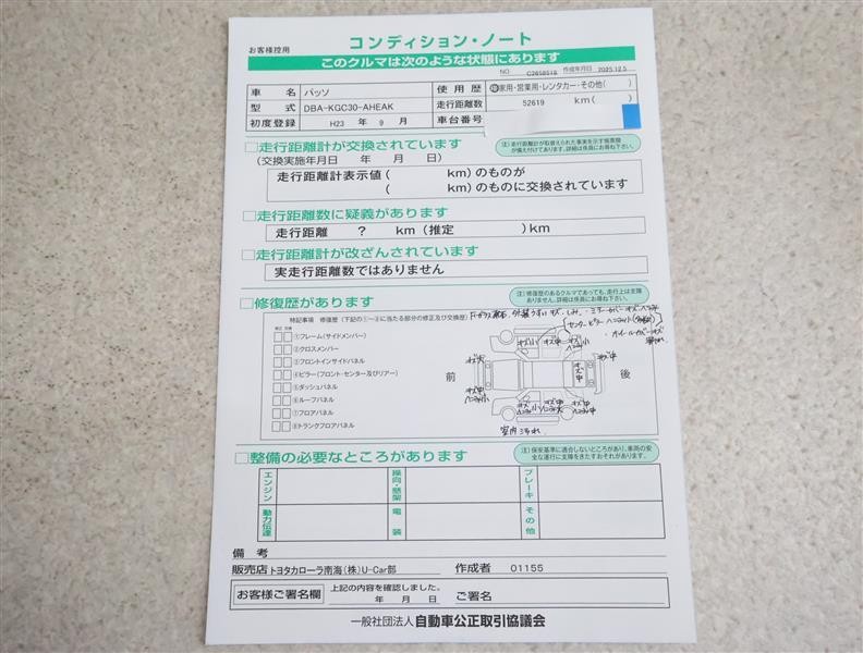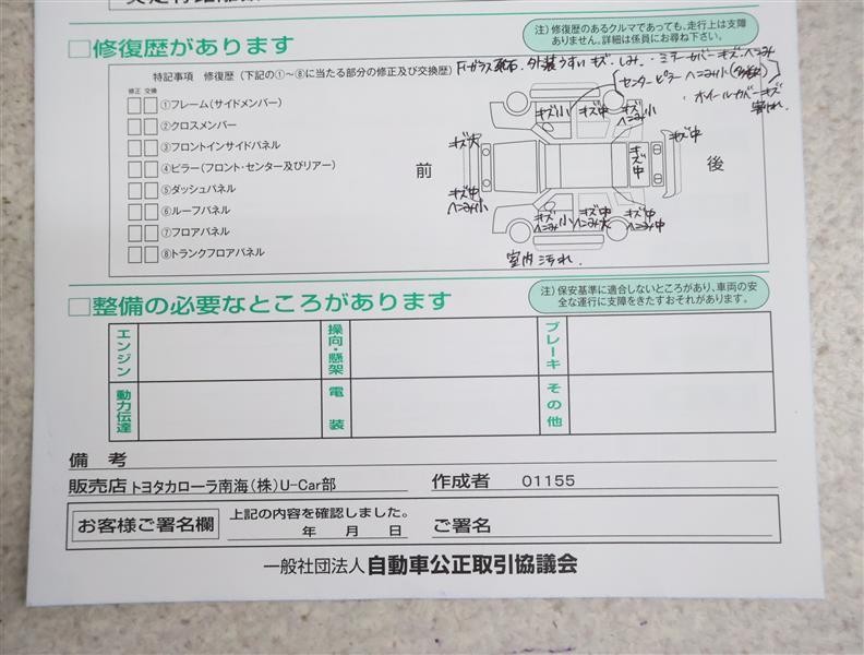 - 「修復歴あり」の場合、修復部位の詳細につきましては、販売店へお問合せください。