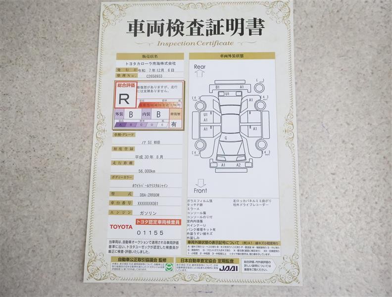 表示項目・方法・運用体制等について、自動車公正取引協議会の定める基準を満たした「トヨタU-Car品質評価制度」に基づき作成しております。