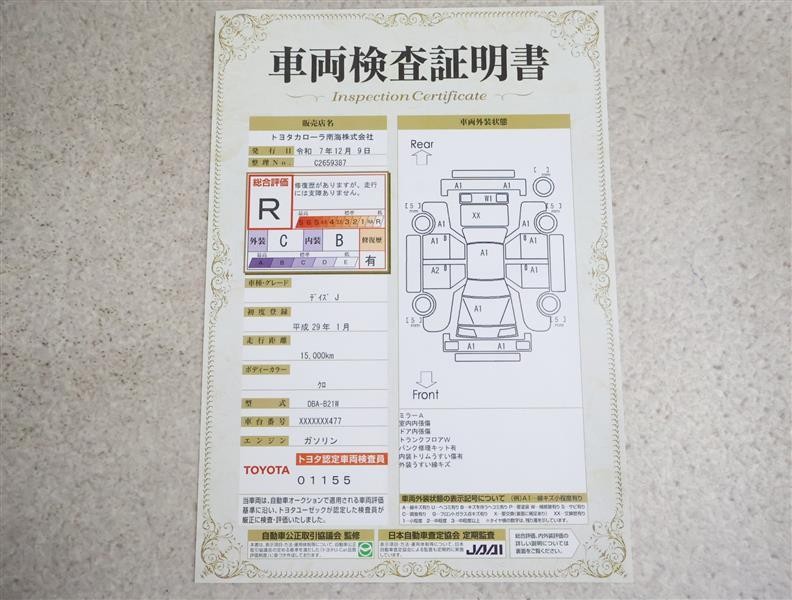 • 注2)上記と同様の評価点・状態表を「車両検査証明書」として店舗の展示車両に搭載しております。