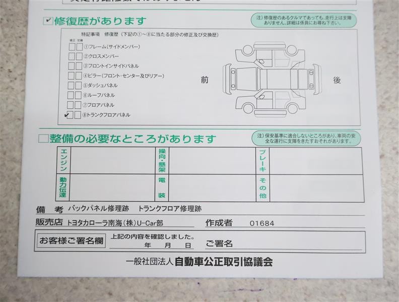• 「修復歴あり」の場合、修復部位の詳細につきましては、販売店へお問合せください。