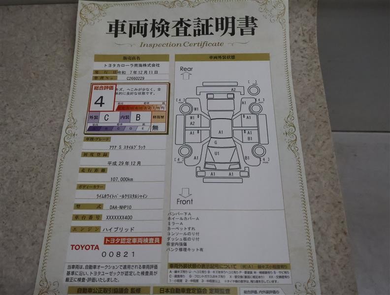 • 注2)上記と同様の評価点・状態表を「車両検査証明書」として店舗の展示車両に搭載しております。