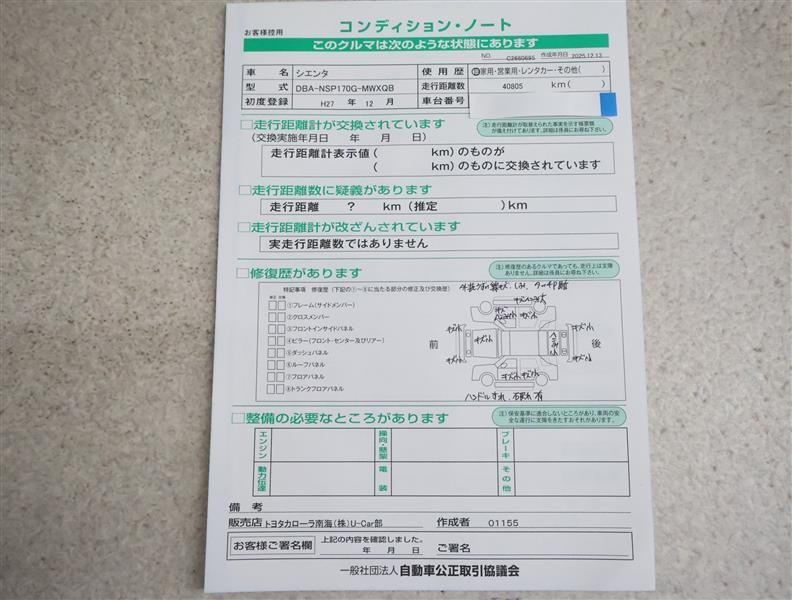 走行距離 41,000km 修復歴 なし
