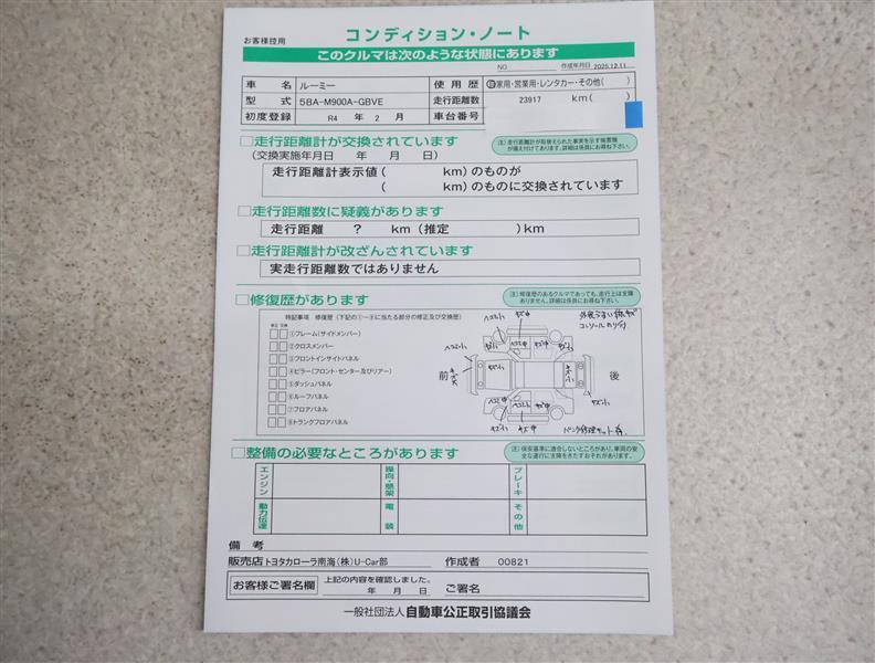 - 「定期点検整備なし(要整備箇所あり)」の場合、整備箇所につきましては、販売店へお問合せください。