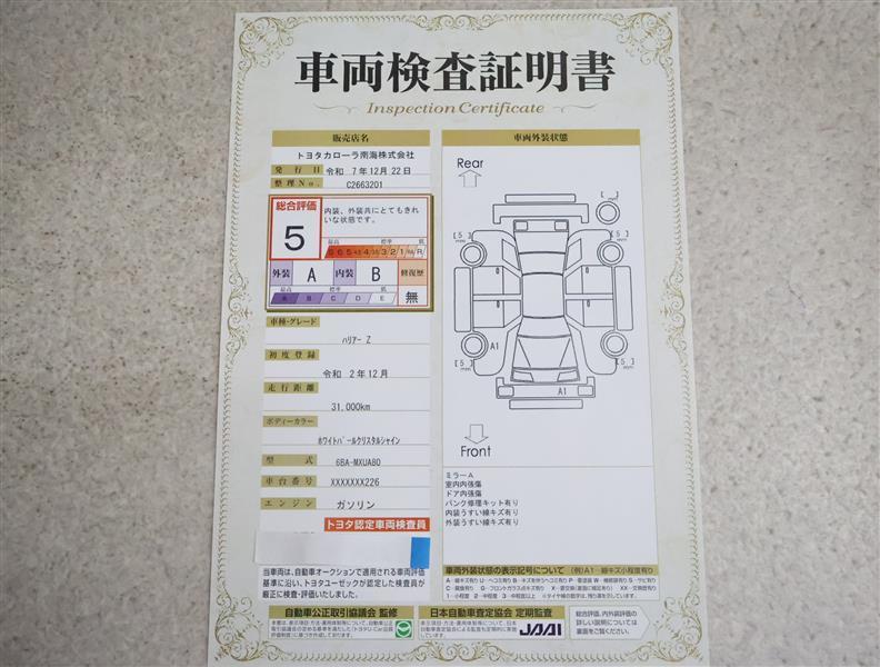 | ボディカラー | ホワイトパールクリスタルシャイン | 修復歴 | なし |