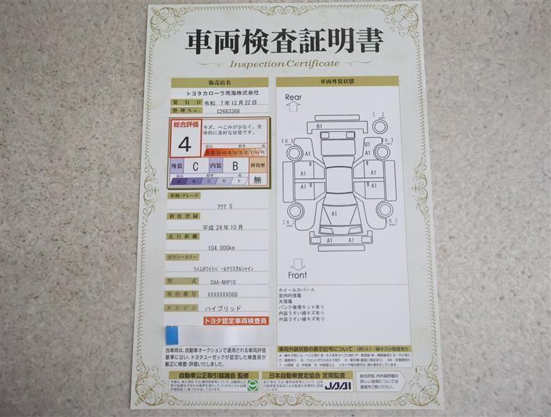 詳細及び現状の車両状態につきましては、店舗スタッフまでお尋ねください。 - 注2)上記と同様の評価点・状態表を「車両検査証明書」として店舗の展示車両に搭載しております。