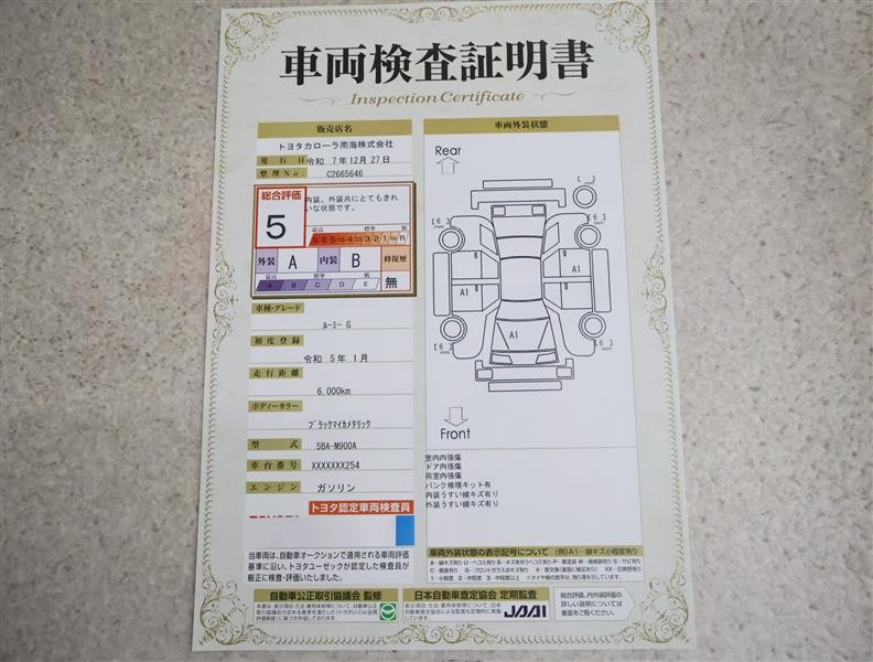 詳細及び現状の車両状態につきましては、店舗スタッフまでお尋ねください。 - 注2)上記と同様の評価点・状態表を「車両検査証明書」として店舗の展示車両に搭載しております。
