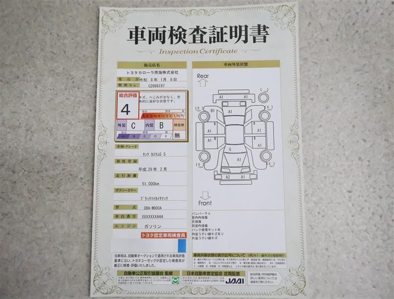 • 注2)上記と同様の評価点・状態表を「車両検査証明書」として店舗の展示車両に搭載しております。