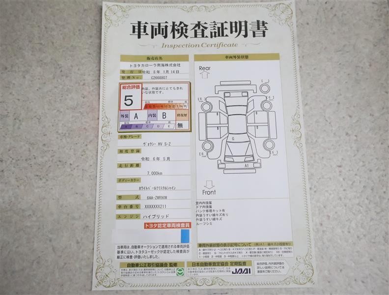• 注2)上記と同様の評価点・状態表を「車両検査証明書」として店舗の展示車両に搭載しております。