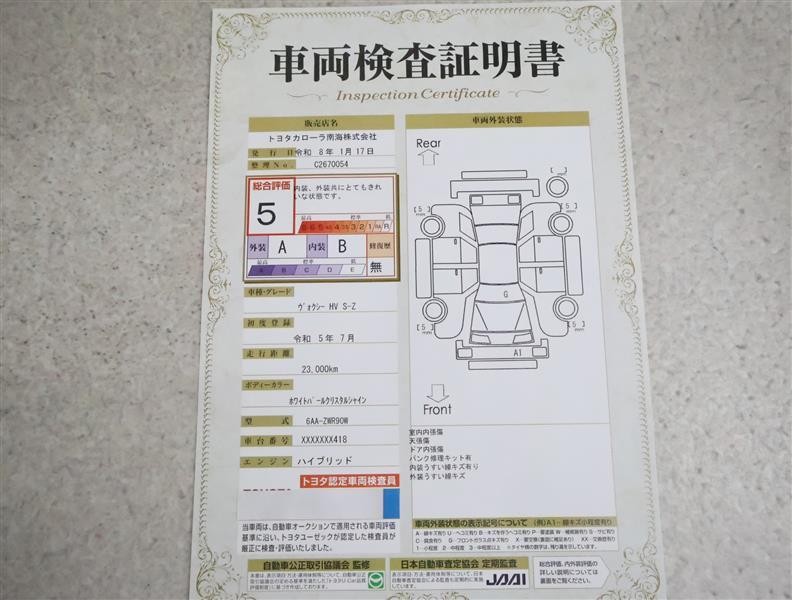 • 注2)上記と同様の評価点・状態表を「車両検査証明書」として店舗の展示車両に搭載しております。