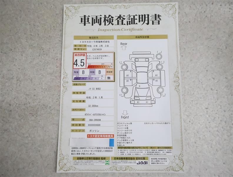 • 注2)上記と同様の評価点・状態表を「車両検査証明書」として店舗の展示車両に搭載しております。